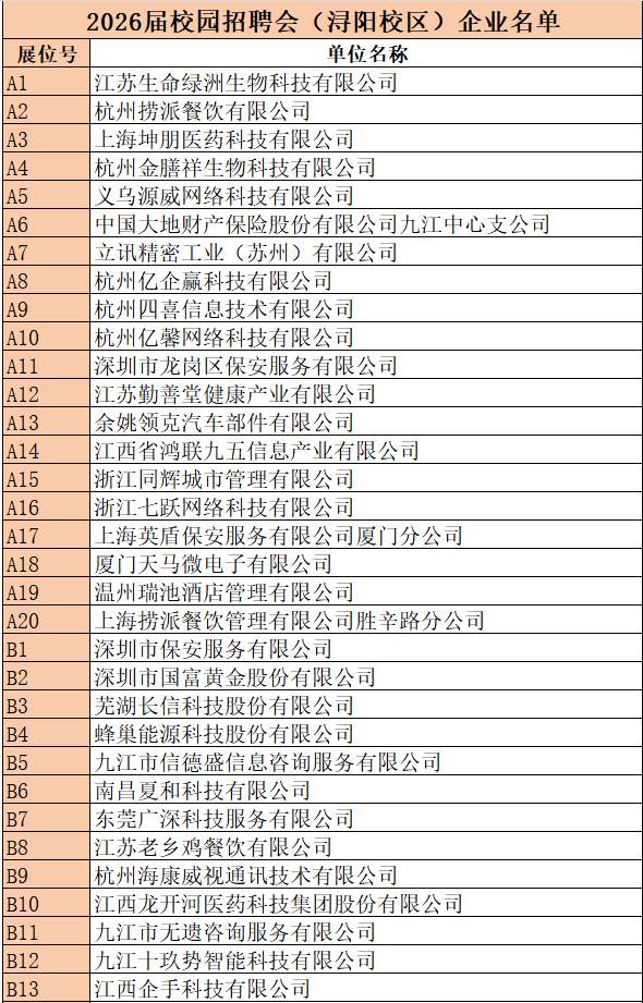 招聘地点:江西省九江市青年路96号江西财经职业学院浔阳校区篮球场