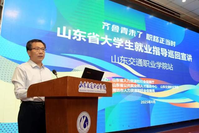 近日,由山东交通职业学院承办的“齐鲁青未了·职路正当时”山东省大学生就业指导巡回宣讲活动圆满落幕。省人社厅就业促进处二级调研员张连军,东北师范大学就业创业教育研究院执行院长、博士生导师刘海滨,省公共就业和人才服务中心就业服务处(专业技术六级)刘容秀,市公共就业和人才服务中心副主任吴茵政,市公共就业和人才服务中心大中专毕业生服务科科长刘先谨等专家莅临现场。山东交通职业学院副院长李德福、张金柱出席,相关部门及各系师生代表300余人参加。